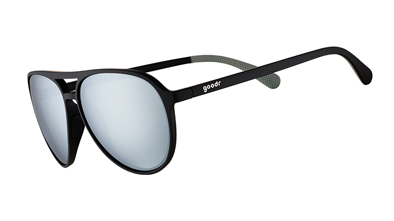 These black and silver sunglasses are all about the upgrades. Polarized reflective silver lenses with UV400 protection? Yup. No slip. no bounce aviator frames for style and comfort? You bet. Upgrade your face to lavish. indulgent luxury. (Lavish indulgent luxury sold separately.)