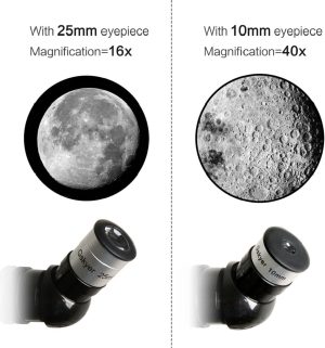 - Magnification: Come with two replaceable eyepieces and one 3x Barlow lens.3x Barlow lens trebles the magnifying power of each eyepiece. 5×24 finder scope with mounting bracket and cross-hair lines inside make locating objects easily.