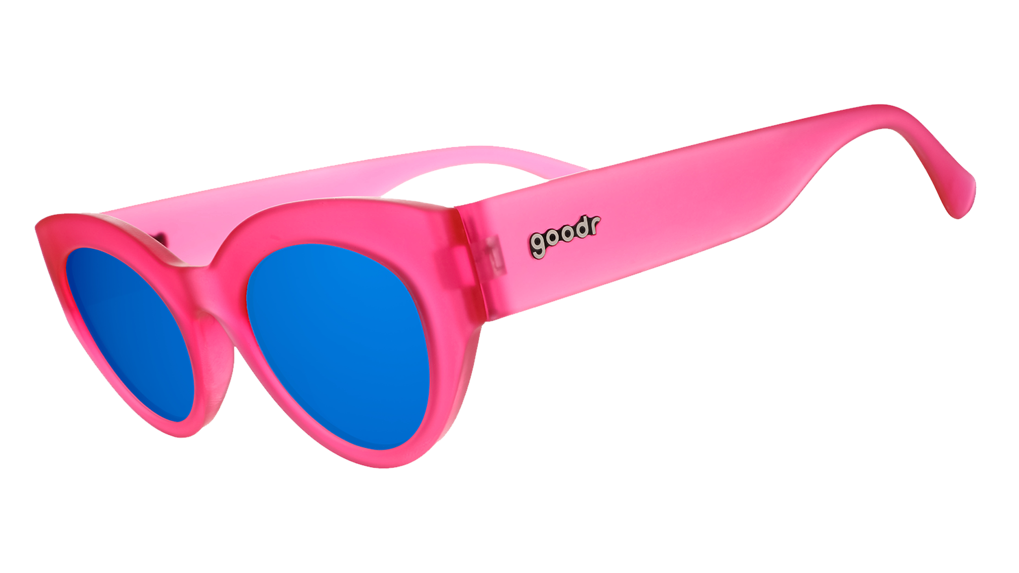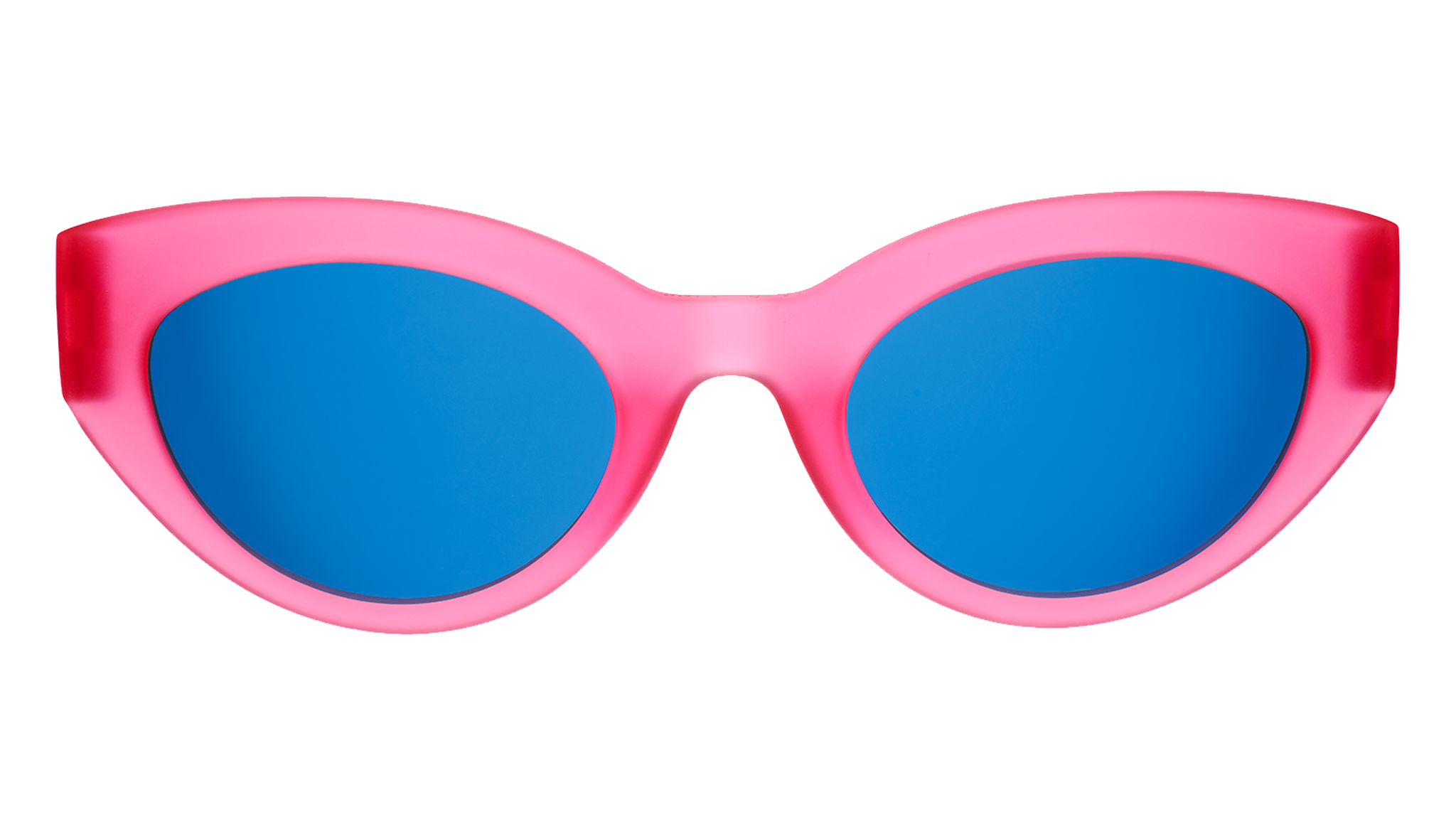 Once in a Pink Moon sunnies are a rare cosmic masterpiece. blending retro-futurist glam with hot pink translucent cat-eye frames and dazzling blue reflective lenses. Designed to never slip or bounce. they stay effortlessly in place whether you’re sipping champagne under the stars or arriving fashionably late to an exclusive intergalactic soirée.