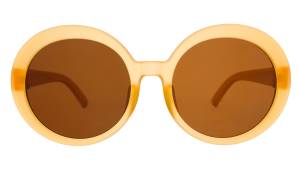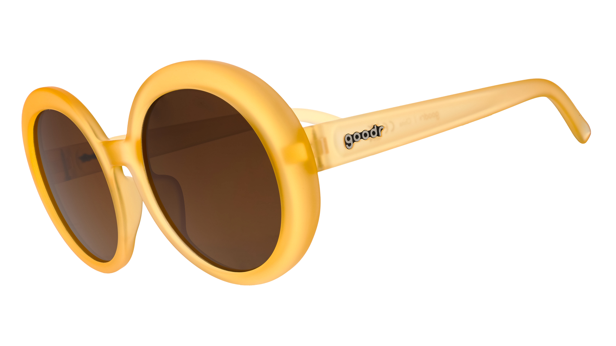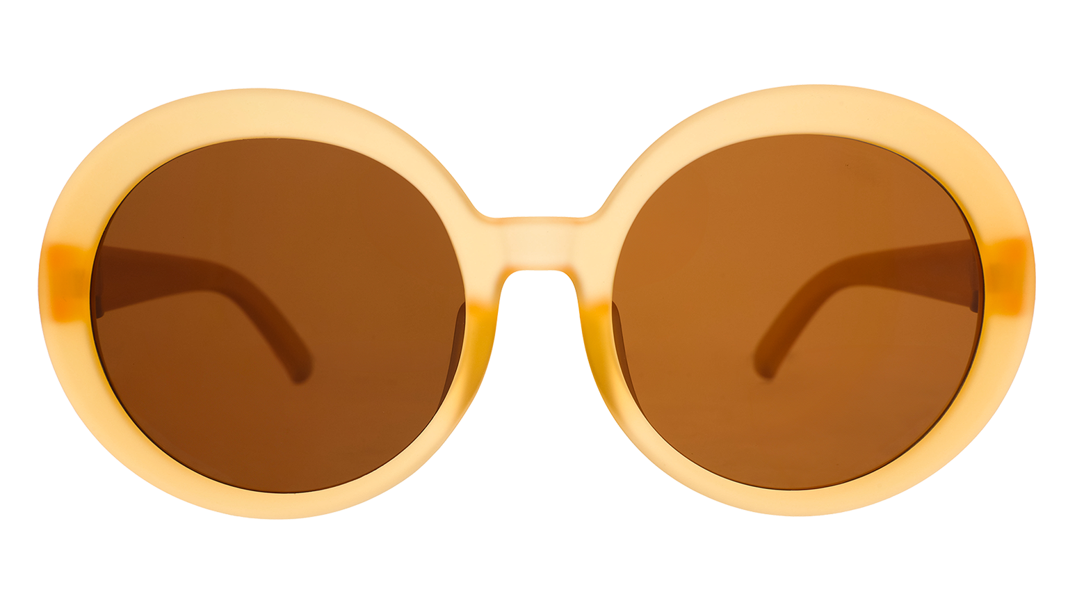 Be the star of the show in oversized. round sunglasses. These juicy translucent orange Mood Gs w/ non-reflective brown lenses make an unapologetically bold style statement whether you’re waiting in line for the port-a-potty or an overpriced beer.