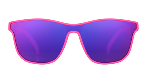Futuristic hot pink one-lens frames with purple reflective lenses won’t slip or bounce while you battle the evil forces of Mars. Full UV400 protection and polarized lenses protect you and reduce glare while you search for alien artifacts.