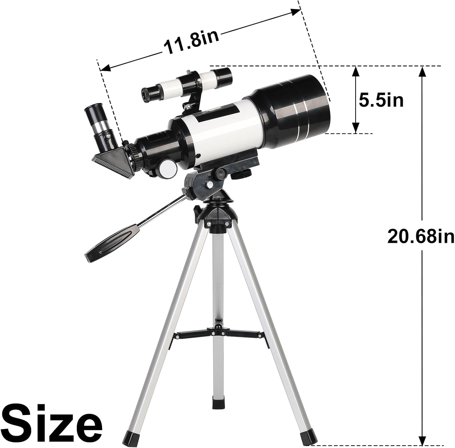 - 【70mm Large Aperture】The telescope equipped with 70mm aperture and 300mm focal length. which provide more lights and clearer images. even beginners can get clear images. The bigger the aperture. the bigger the field of vision. and the clearer the image.