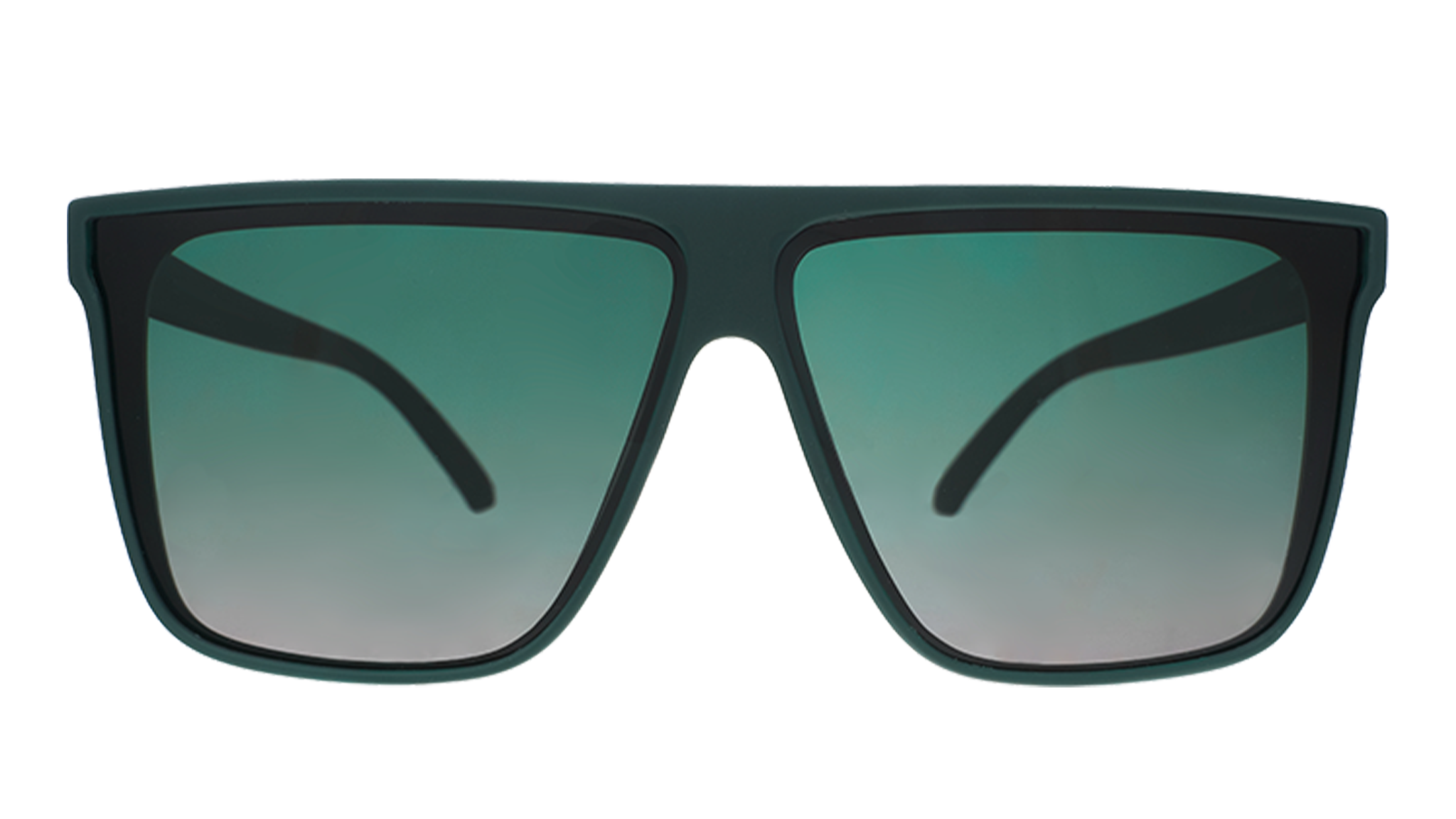 Forget incognito mode. deep green dares to get noticed in these fashionable. oversized flat-top sunglasses with green gradient lenses. Made for movers and shakers (both literal and figurative). No Slip. No Bounce. All Polarized. All Verve.