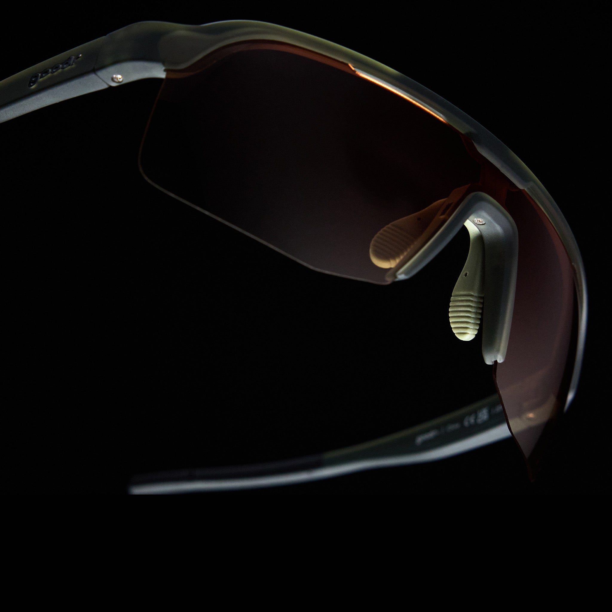 Green shield sunglasses w/ half-rim frames & amber gradient lenses shield you from light above while giving you better visibility of your feet. Won’t slip or bounce while you deadlift fallen palm trees or wrassle a gorilla for the last coconut water.