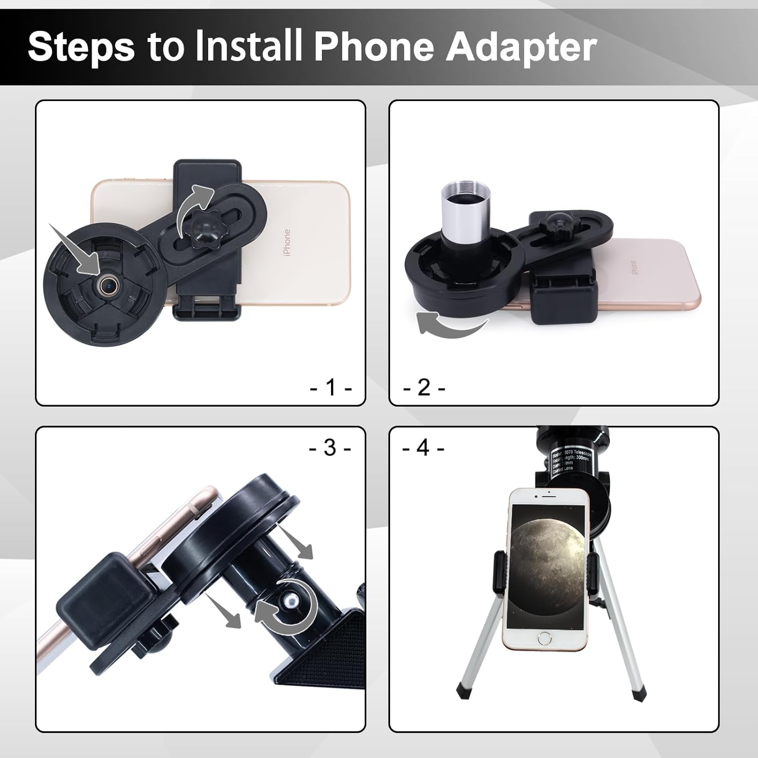 - Wireless Remote: ToyerBee telescope set includes one phone adapter and one wireless camera remote to explore the nature of the world easily through the screen. You can take some amazing photos to share with your friends. The telescope is a great astronomy gift to send the astronomy enthusiasts and 8-12 kids.