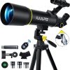 - 70mm Large Aperture: The telescope is equipped with a 70mm large aperture objective lens which makes the images brighter and clearer. The bigger the aperture is. the bigger the field of vision will be. so you can see clearer images. Professional telescope can help adults&kids view the planets and moon.